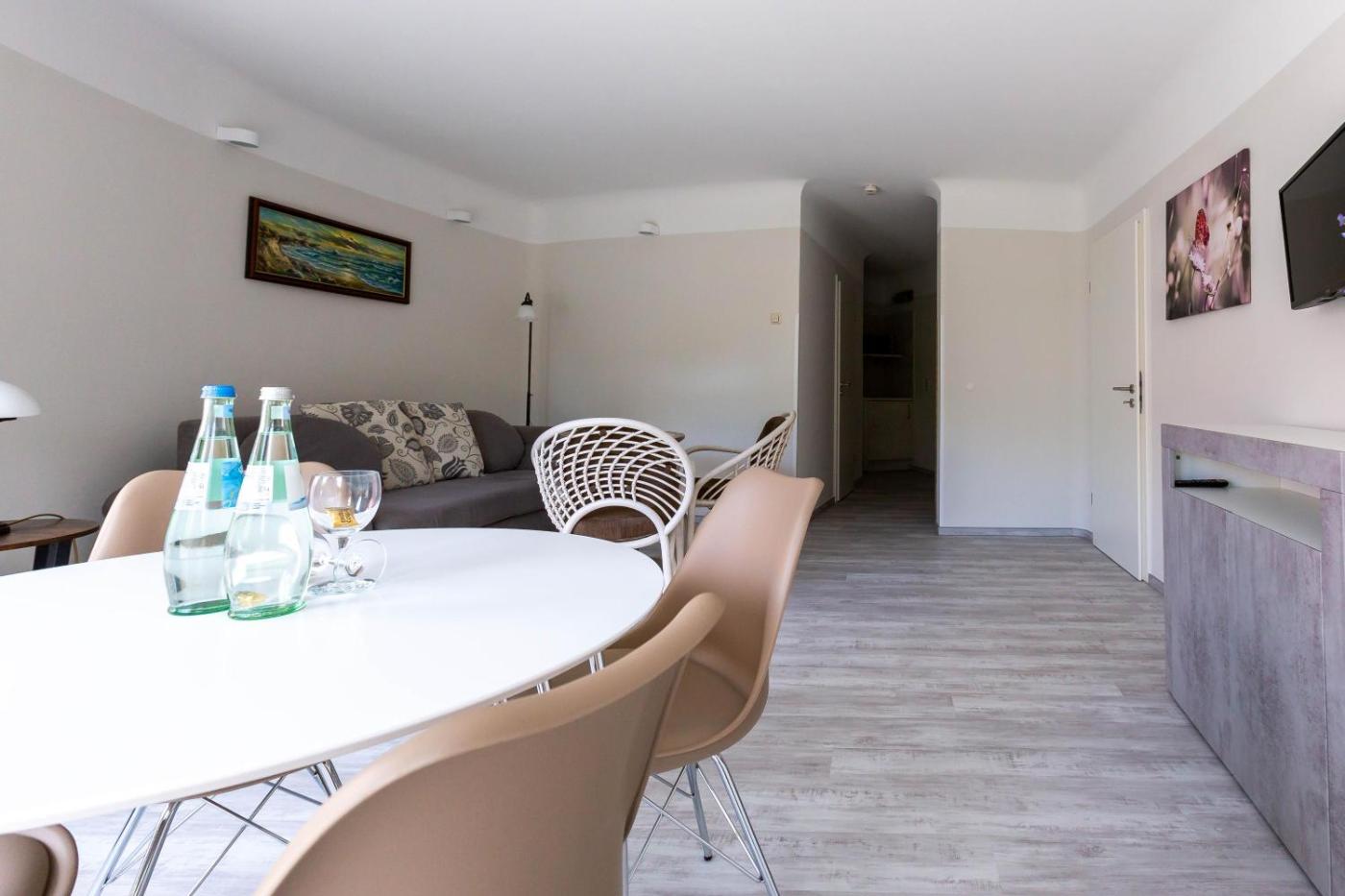 Apartment mit Terrasse. This spacious apartment consists of 1 living room, 1 separate bedroom and 2 bathrooms with a shower and a hairdryer. The well-equipped kitchen features a stovetop, a refrigerator, a dishwasher and kitchenware. Featuring a terrace, this apartment also provides a coffee machine, a seating area and a TV with satellite channels. The unit offers 2 beds.