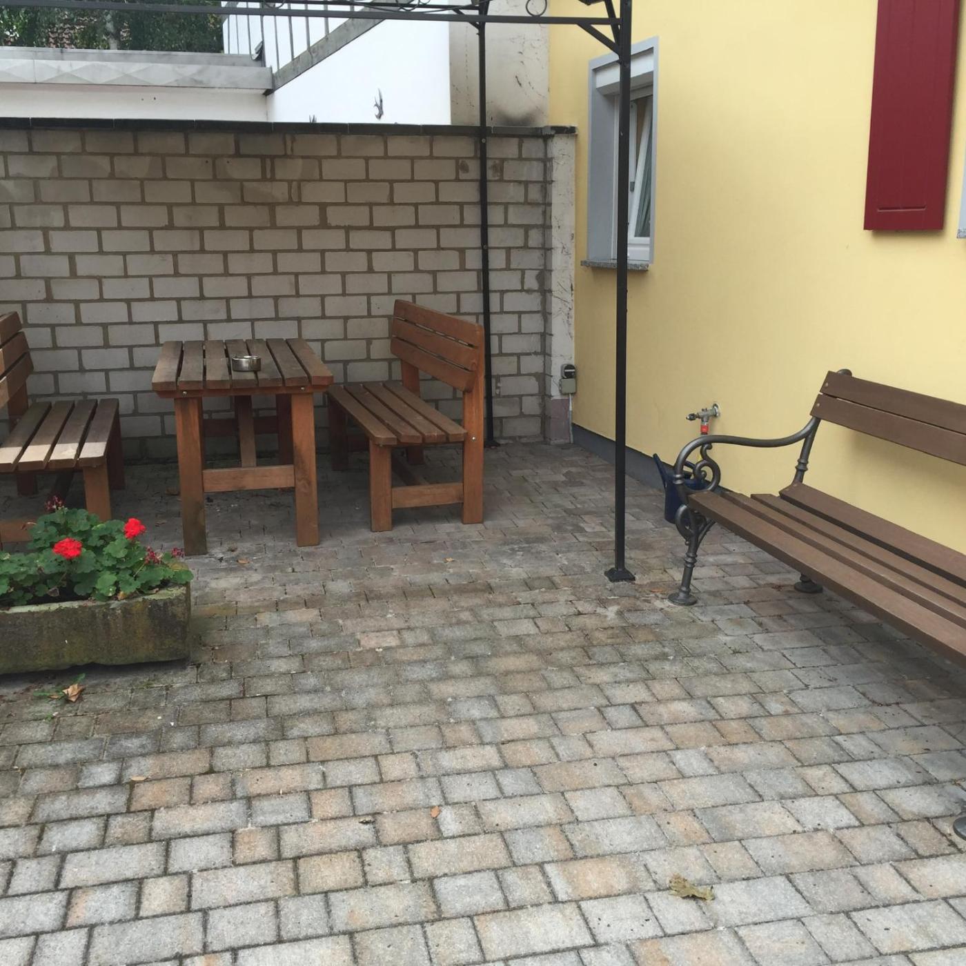 Einzelzimmer mit Gemeinschaftsdusche und -WC. In the well-fitted kitchenette, guests will find a stovetop, a refrigerator, a dishwasher and kitchenware. This single room is comprised of a flat-screen TV with satellite channels, a shared bathroom as well as an outdoor dining area. The unit has 1 bed. ;