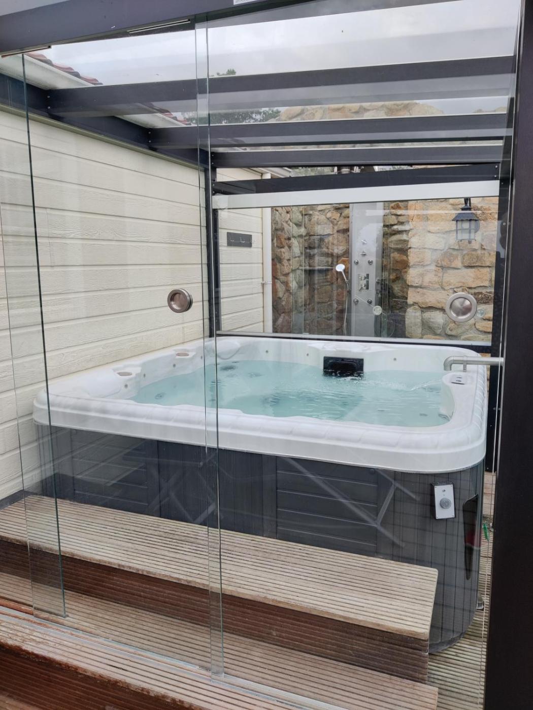 Mobilheim. This mobile home features a private pool, hot tub and spa bath. Boasting a private entrance, this air-conditioned mobile home features a kitchen, 2 bedrooms and 1 bathroom with a shower and a hairdryer. Guests will find a stovetop, a refrigerator, a dishwasher and kitchenware in the kitchen. The mobile home also comes with a barbecue. There is a coffee machine, a seating area and a terrace and complimentary winechampagne is offered for guests. The unit has 3 beds. ;