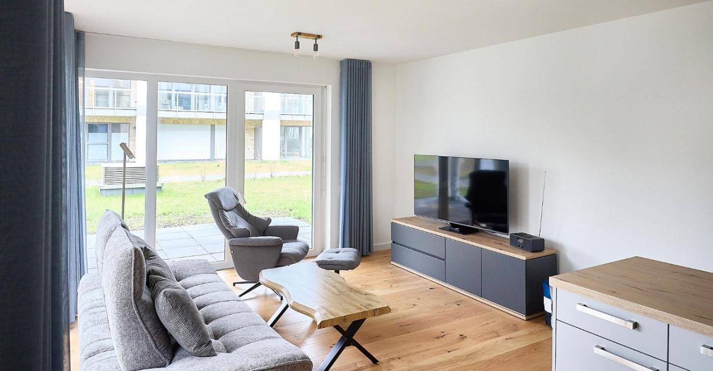Die Unterkunft Duhner Spitze - Hs3 App01 Dünenruh ist ausgestattet mit 1 Schlafzimmer, einer Küchenzeile mit einem Kühlschrank und einem Toaster, einer Waschmaschine und 1 Badezimmer. Es gibt einen TV mit Satellitenkanälen.