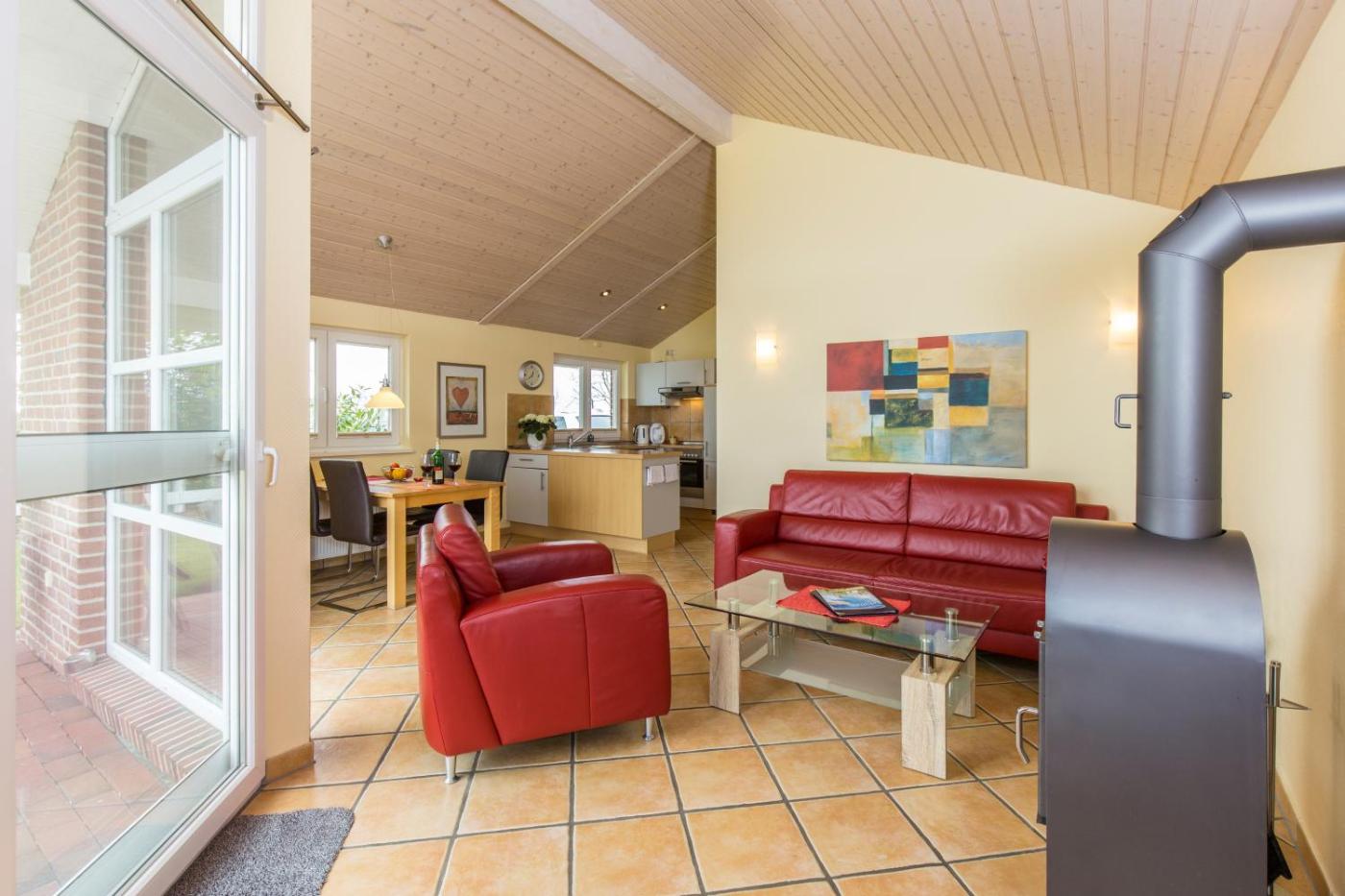 Ferienhaus. The fireplace is the standout feature of this holiday home. This holiday home features 1 living room, 2 separate bedrooms and 1 bathroom with a shower and a hairdryer. Guests will find a stovetop, a refrigerator, a dishwasher and an oven in the well-equipped kitchen. The holiday home also comes with a barbecue. This holiday home has a washing machine, a coffee machine, a flat-screen TV and a terrace. The unit has 4 beds.