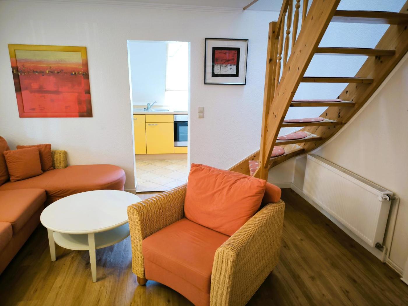 Apartment mit Meerblick. This apartment includes 1 living room, 1 separate bedroom and 1 bathroom with a shower and a hairdryer. In the well-equipped kitchen, guests will find a stovetop, a refrigerator, a dishwasher and kitchenware. The apartment offers a coffee machine, a seating area, a wardrobe, a TV, as well as sea views. The unit has 2 beds.