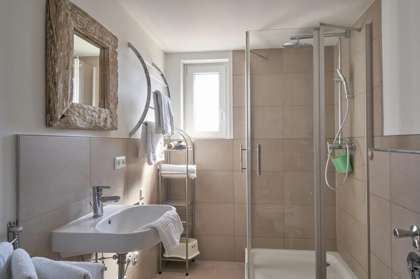 Apartment mit 2 Schlafzimmern - Nebengebäude. Featuring a private entrance, this apartment consists of 1 living room, 2 separate bedrooms and 1 bathroom with a shower and a hairdryer. Guests can make meals in the kitchenette that is equipped with a stovetop, a refrigerator, kitchenware and an oven. The apartment provides soundproof walls, a tea and coffee maker, a seating area, a dining area, as well as a flat-screen TV with satellite channels. The unit offers 2 beds. ;
