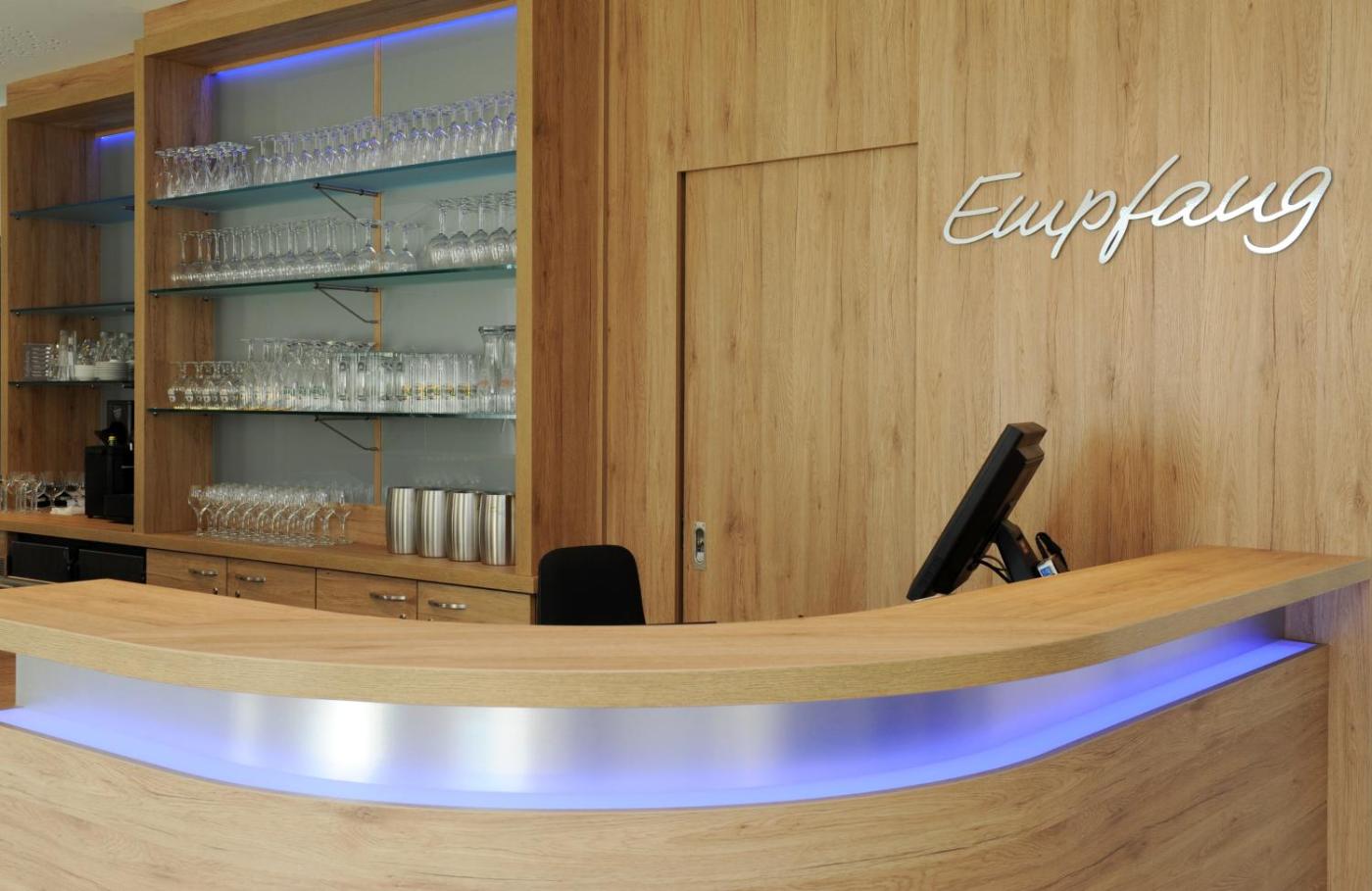 Abtrennungen oder physische Barrieren zwischen Personal und Gästen in entsprechenden Bereichen