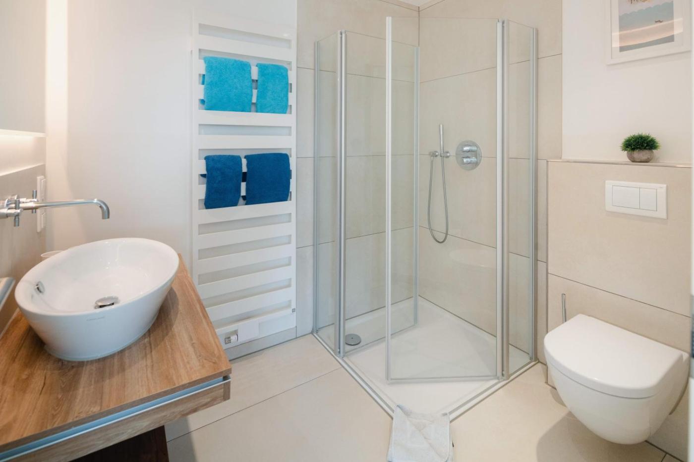 Apartment mit Balkon. This spacious apartment comes with a kitchen, a seating area, 2 separate bedrooms and 2 bathrooms with a shower and a hairdryer. The fully equipped kitchen features a stovetop, a refrigerator, a dishwasher and kitchenware. This apartment has a washing machine, a coffee machine, a TV with cable channels and a balcony. The unit has 2 beds.