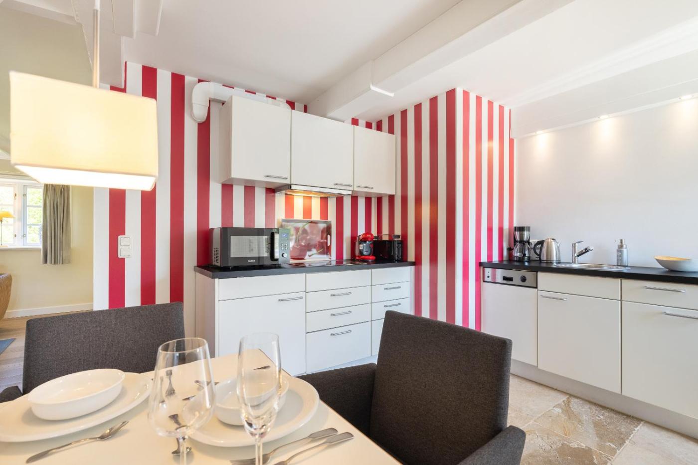Apartment - Erdgeschoss. This apartments standout feature is the sauna. The apartment has 1 bedroom and 1 bathroom with a shower and free toiletries. In the well-fitted kitchen, guests will find a stovetop, a refrigerator, a dishwasher and kitchenware. The apartment features tiled floors, a seating area with a TV, a washing machine, a coffee machine, as well as a wardrobe. The unit has 1 bed.