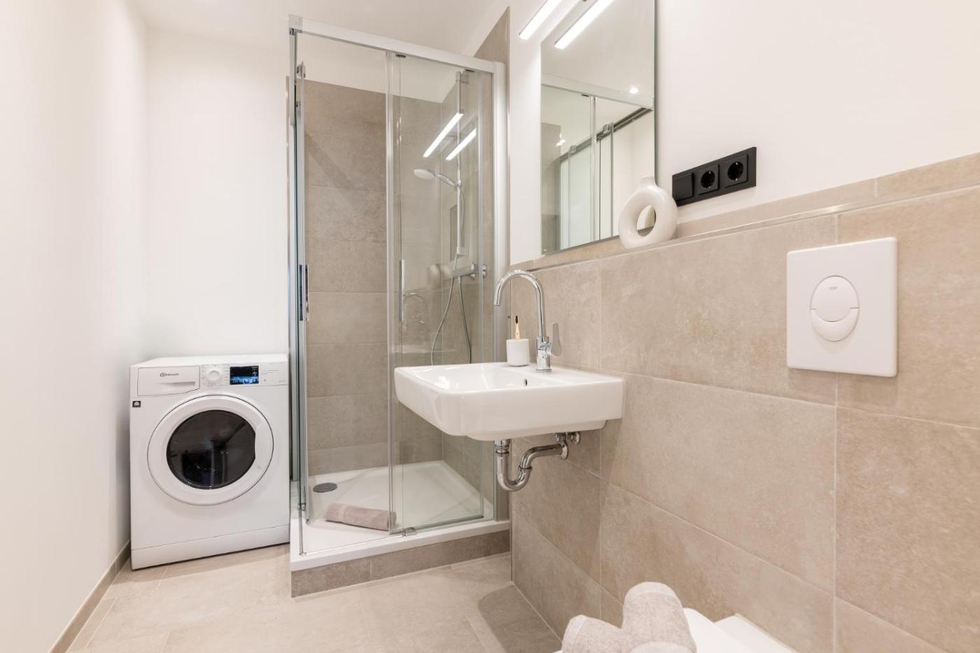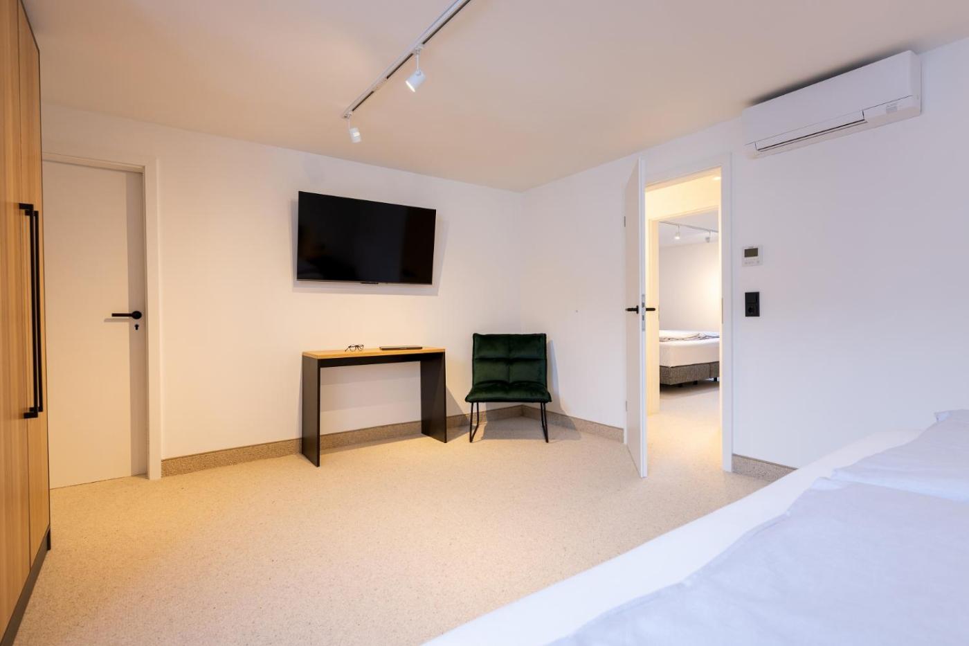 Die Wohneinheiten verfügen über Parkettböden und bieten eine voll ausgestattete Küche mit einem Kühlschrank, einen Essbereich, einen Flachbild-TV mit Satellitenkanälen sowie ein eigenes Badezimmer mit einer Dusche und einem Haartrockner. Es gibt einen Geschirrspüler, einen Ofen und eine Mikrowelle sowie eine Kaffeemaschine und einen Wasserkocher.