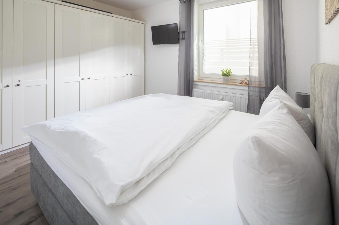 Apartment - Erdgeschoss. This apartment consists of 1 living room, 1 separate bedroom and 1 bathroom with a shower and a hairdryer. In the well-fitted kitchen, guests will find a stovetop, a refrigerator, a dishwasher and kitchenware. The apartment provides a coffee machine, a seating area, a wardrobe, a sofa and a TV. The unit offers 2 beds.