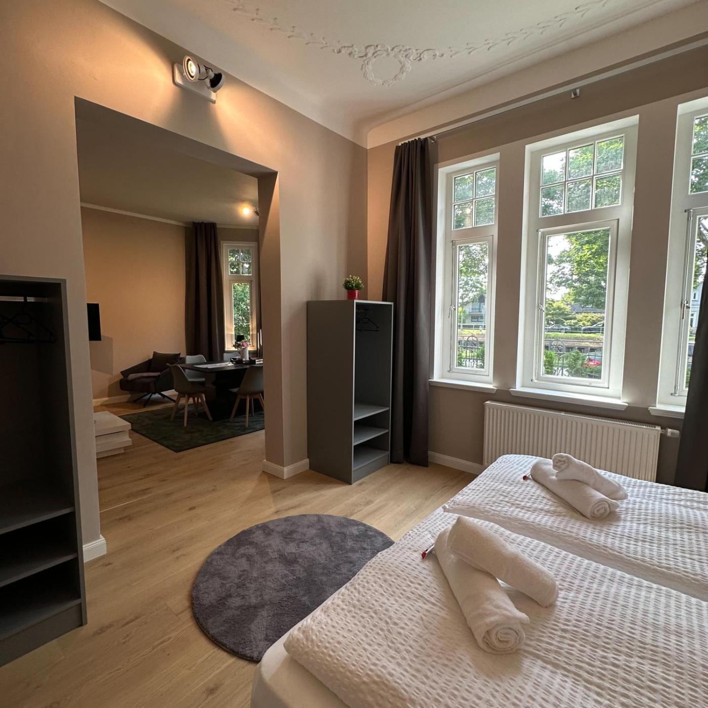 Die Unterkunft Uferresidenz - Altbau-Juwel mit Terrasse, Garten und Wasserblick ist gelegen in Oldenburg, 900 m von Cäcilienbrücke, 900 m von Landesmuseum für Kunst und Kulturgeschichte und 900 m von Landesmuseum Natur und Mensch entfernt. Sie bietet Gartenblick und kostenloses WLAN in der ganzen Unterkunft.