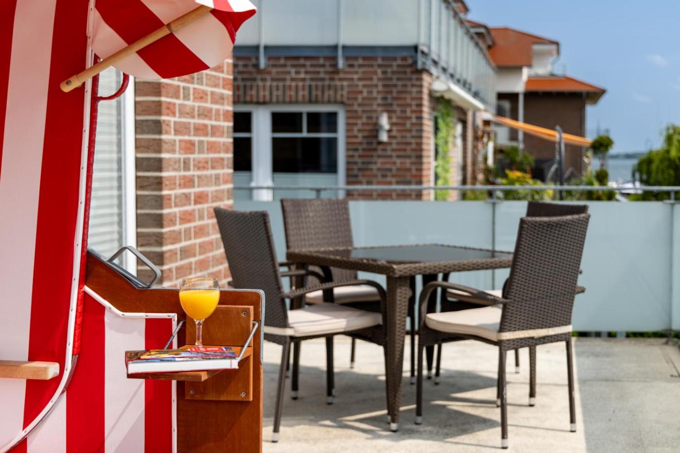 Apartment Hafenflair (3). Diese geräumige Ferienwohnung umfasst 1 Wohnzimmer, 1 separates Schlafzimmer sowie 1 Bad mit einer Dusche und einem Haartrockner. In der Küche erwarten Sie ein Kochfeld, ein Kühlschrank, ein Geschirrspüler und Küchenutensilien. Die Ferienwohnung bietet darüber hinaus eine Terrasse mit Seeblick, eine Kaffeemaschine und einen Flachbild-Sat-TV. Die Wohneinheit ist mit 2 Betten ausgestattet. ;