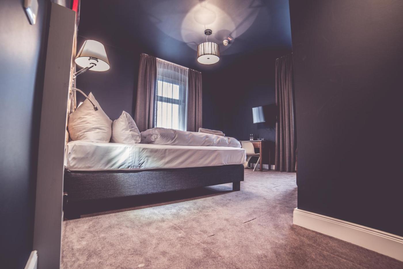 Doppelzimmer. Dunkel bemalte Zimmer im Vintage-Design mit warmem Licht machen Ihren Aufenthalt sehr gemütlich und komfortabel. WLAN nutzen Sie kostenlos. Bitte beachten Sie, dass kein Kleiderschrank, sondern Haken und Kleiderbügel vorhanden sind. ;