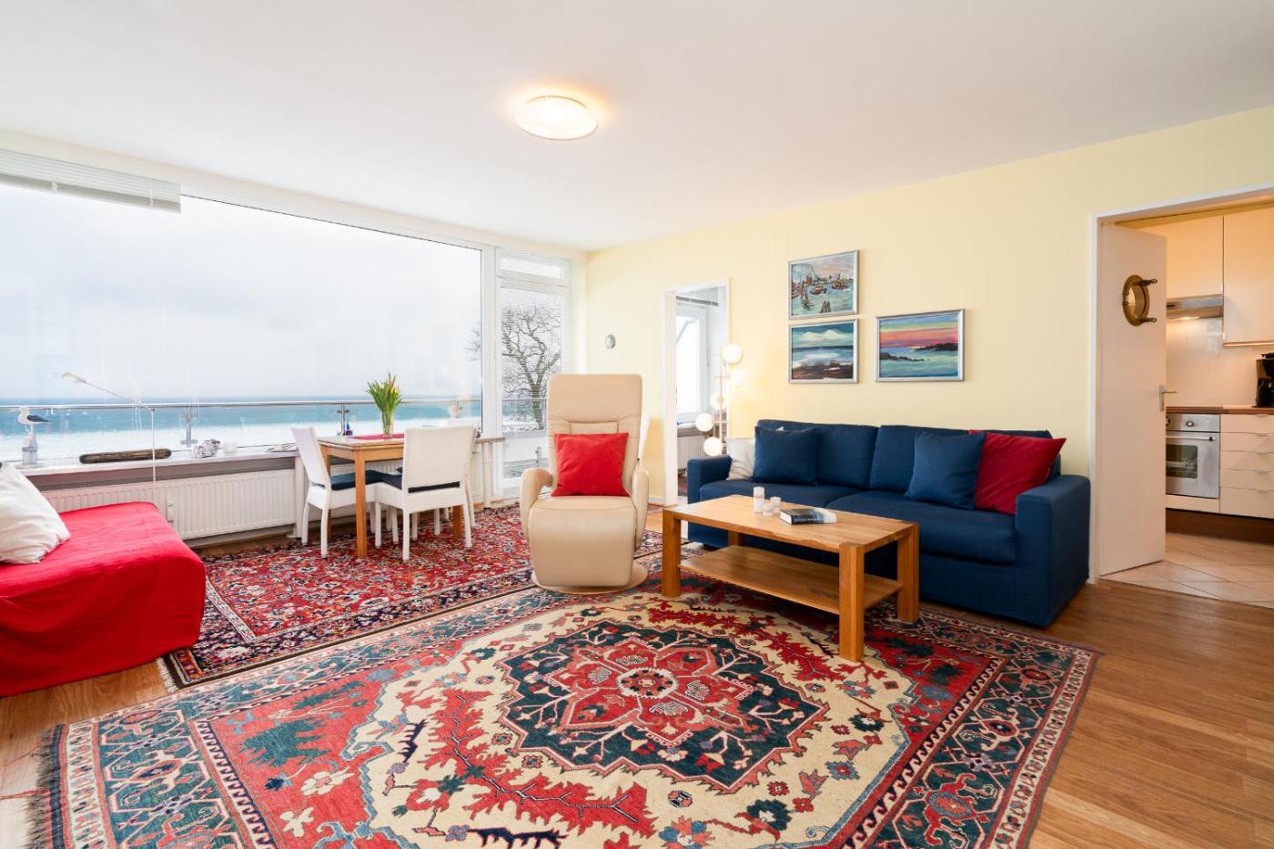 Apartment mit Meerblick. This apartment consists of 1 living room, 1 separate bedroom and 1 bathroom with a shower and a hairdryer. Guests can make meals in the kitchen that is equipped with a refrigerator, a dishwasher, kitchenware and an oven. Featuring a balcony with sea views, this apartment also provides a washing machine and a TV. The unit offers 2 beds.