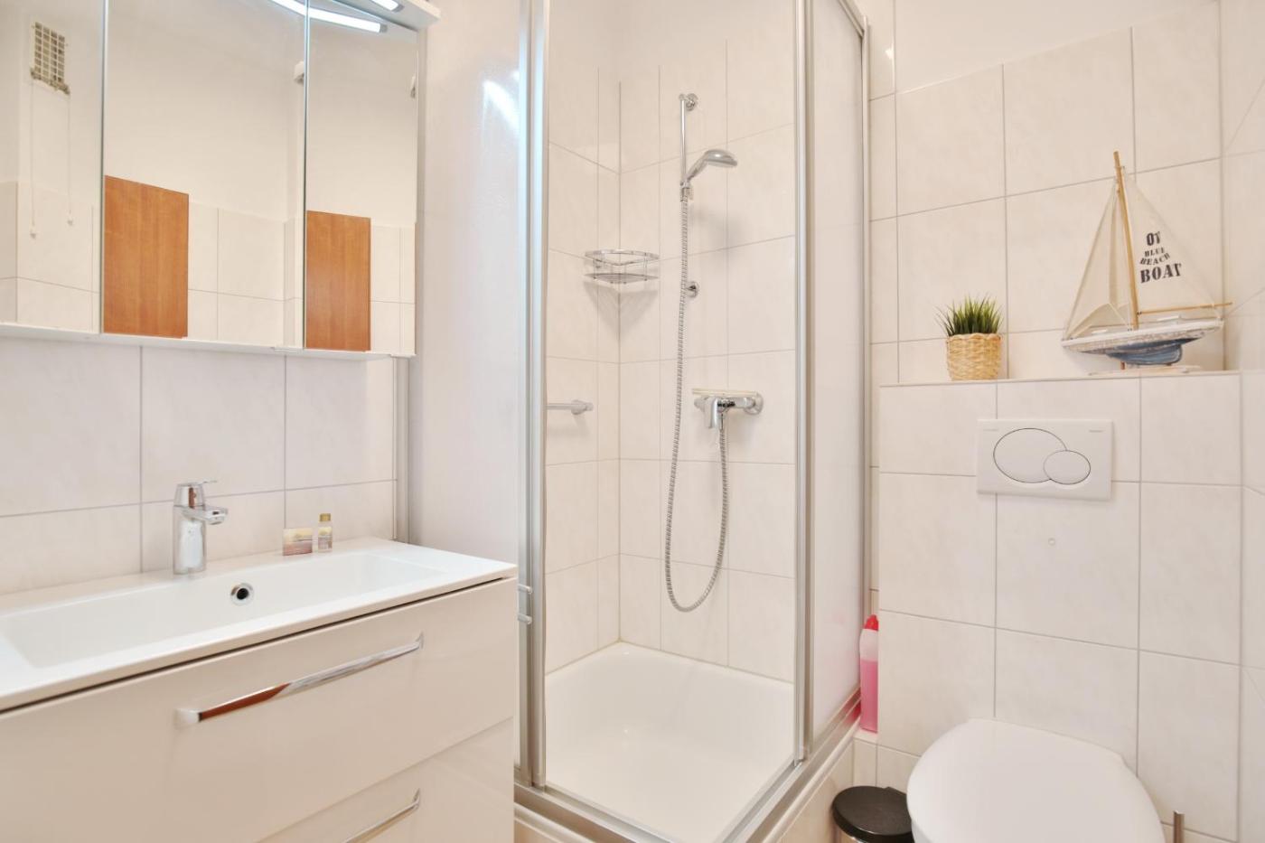 Apartment mit Balkon. The apartment provides a washing machine, a coffee machine, as well as a private bathroom featuring a shower and a hairdryer. In the fully equipped kitchen, guests will find a stovetop, a refrigerator, a dishwasher and an oven. A seating area with a TV, a sofa and a balcony are provided in this apartment. The unit offers 2 beds.