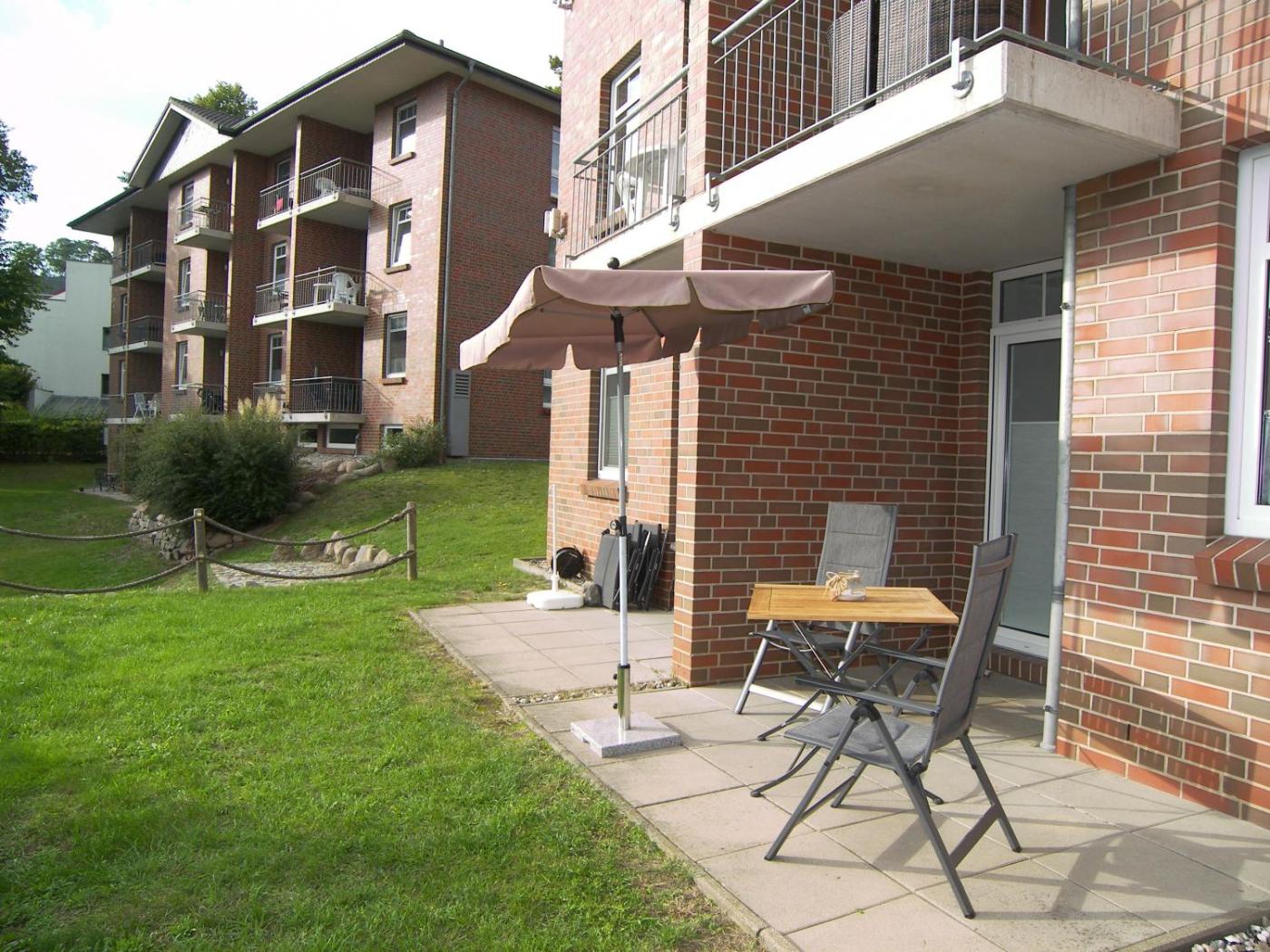Apartment mit 1 Schlafzimmer und Terrasse. This apartment consists of 1 living room, 1 separate bedroom and 1 bathroom with a walk-in shower and a hairdryer. Guests can make meals in the kitchenette that is equipped with a stovetop, a refrigerator, a dishwasher and an oven. Featuring a terrace, this apartment also provides a washing machine, a coffee machine and a flat-screen TV with cable channels. The unit offers 2 beds.
